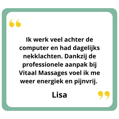 Met mijn specialisatie in sportmassage en het gericht aanpakken van nek-, schouder- en rugklachten, bied ik massages die volledig zijn afgestemd op jouw unieke behoeften en leefstijl.